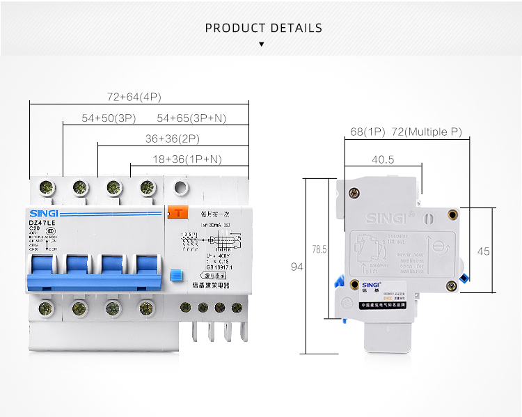Der ELCB kann den Stromkreis auch vor Überlastung und Kurzschluss schützen oder für das seltene Umschalten des Stromkreises unter normalen Bedingungen verwendet werden. Und zusätzliche Schutzfunktionen wie Überspannung, Unterspannung können je nach Kundenwunsch hinzugefügt werden.
