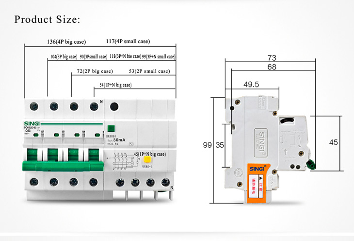 SC65LE RCBO wird im Stromnetz mit 50 Hz Wechselstrom, einphasig 230 V und drei Phasen 400 V eingesetzt. Wenn jemand einen Stromschlag erleidet oder der Reststrom den Standardwert überschreitet, kann der RCBO die Stromversorgung automatisch unterbrechen, um die persönliche Sicherheit zu schützen und zu verhindern, dass das Gerät einen durch den Reststrom verursachten Fehler erleidet. Es kann den Stromkreis auch vor Überlastung und Kurzschluss schützen oder für das seltene Umschalten des Stromkreises unter normalen Bedingungen verwendet werden. Und zusätzliche Schutzfunktionen wie Überspannung, Unterspannung können je nach Kundenwunsch hinzugefügt werden.
