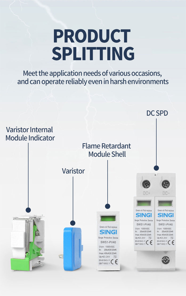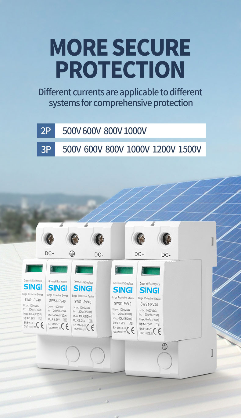 2. In großen Solaranlagen, insbesondere solchen mit langen Kabelwegen. Lange Kabel fungieren als Antennen und sind anfälliger für induzierte Spannungsspitzen durch Blitzschlag und Netzumschaltungen. SPDs am Anschlusskasten verhindern, dass diese Überspannungen in das System gelangen.